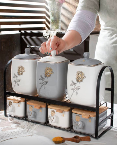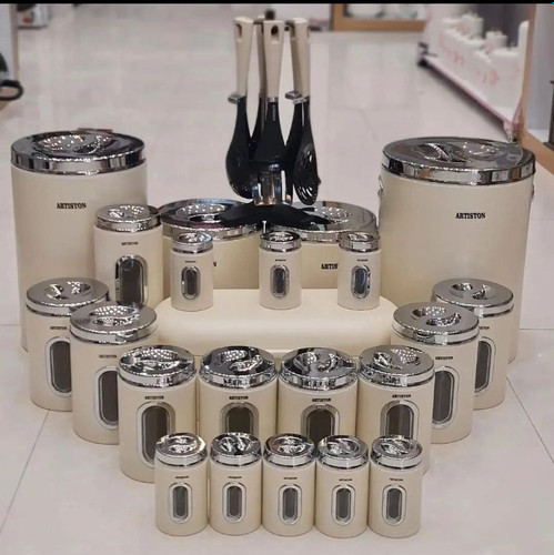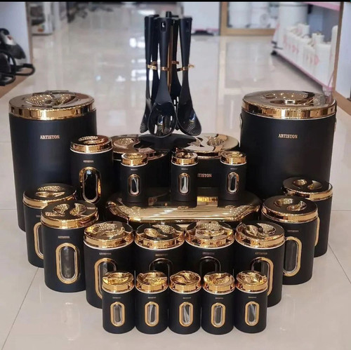 سرویس اشپزخانه ۲۹ پارچه مشکی وسفید و طوسی و کرم در طلا ارتیسون
