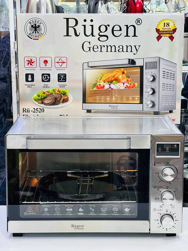 نوع: آون توستر مدل: RU-2520 برند: روگن ساخت کشور: آلمان منبع تغذیه: برق توان آون توستر: 2200 وات ظرفیت: 50 لیتر جنس بدنه آون توستر: استیل ضد زنگ جنس درب: شیشه تعداد المنت: 6 عدد محدوده حرارت: 75 الی 250 درجه سانتی گراد سیستم جوجه گردان: دارد کانوکشن ( پخش گرما و پخت یکسان): دارد صفحه نمایش: دارد لامپ داخلی: دارد تایمر: دارد بازه زمانی تایمر: 1 الی 120 دقیقه 2 عدد گریل برای پیتزا و گریل: دارد سینی چکه گیر: 2 عدد دو عدد گیره مخصوص سینی و جوجه گردان: دارد قابلیت تنظیم روشن بودن المنت های پایین و بالایی به صورت مجزا