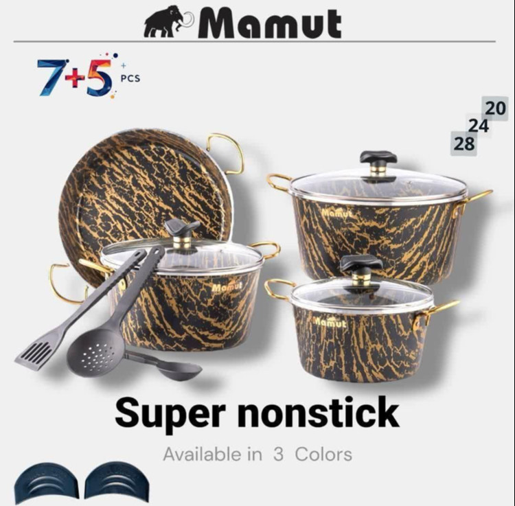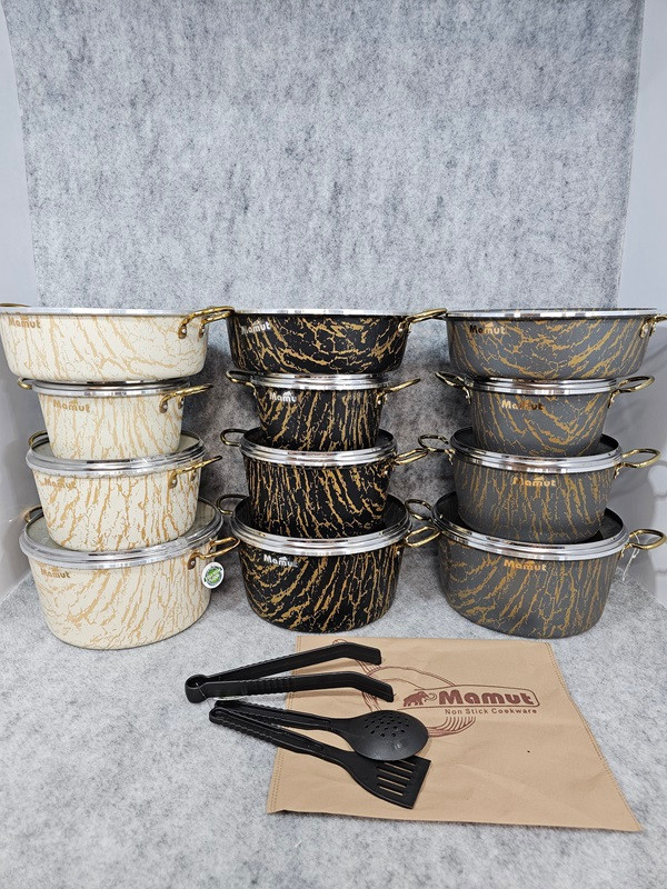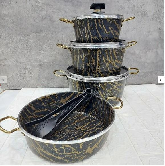 ✅سرویس 7پارچه فورج ماربل(طرح سنگ) دسته و قوپه طلایی در 3رنگ متنوع و زیبا مشکی،کرم، طوسی