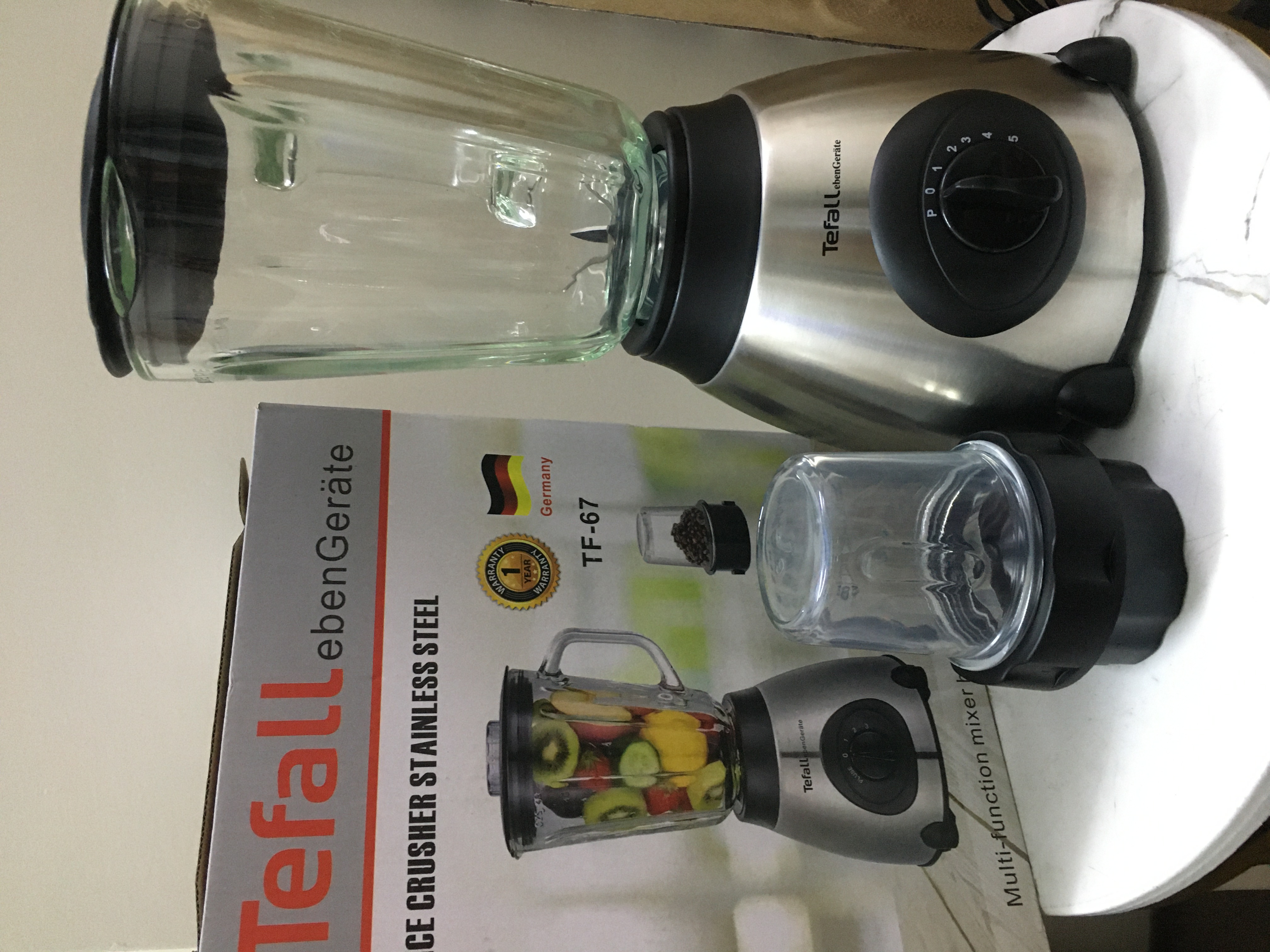 برند: تفال (TEFAL) گنجایش پارچ: 2 لیتری جنس بدنه: استیل ضد زنگ تیغه 6 پره استیل ضد زنگ قابلیت تنظیم در 5 سرعت ساخت چین لیسانس المان