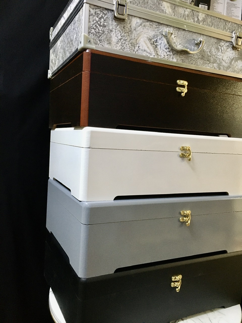 سفید. طوسی. قهوه ای. مشکی براق. مشکی مات.