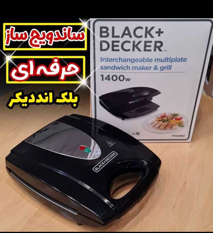 ساندویج ساز بلک انددکر دارای دو صفحه قابل تعویض سه فیش اصلی