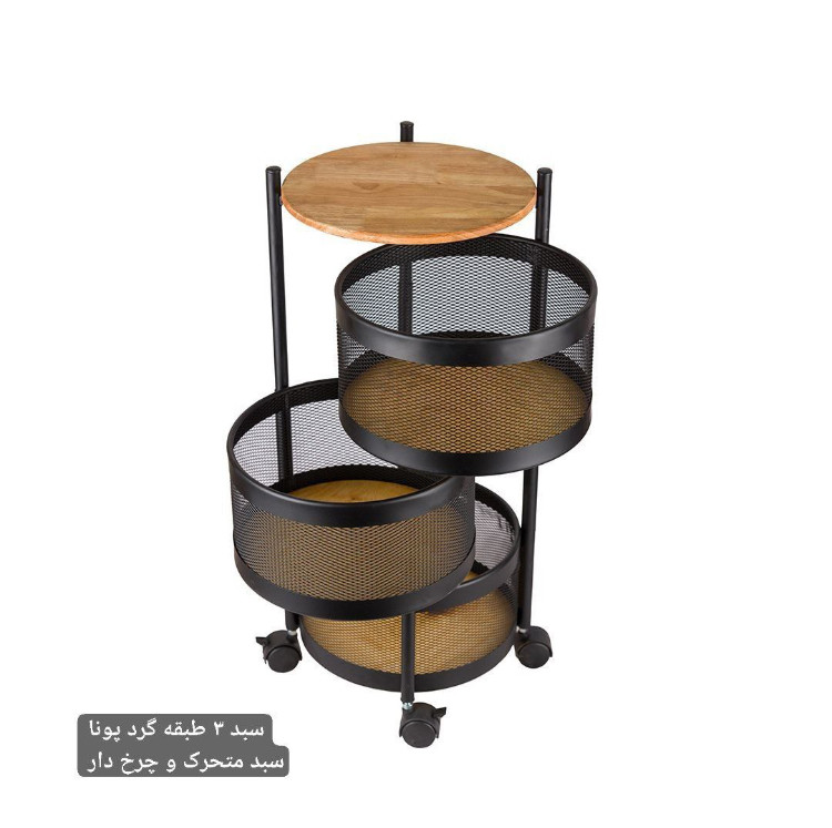 سبد ۳ طبقه گرد پونا چرخ دار