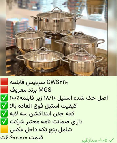 سرویس قابلمه ۱۷ پارچه ام جی اس