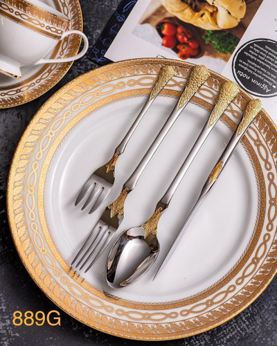 سرویس قاشق چنگال ۲۴ نفره ۱۱۰ پارچه نیمه طلا وارداتی
