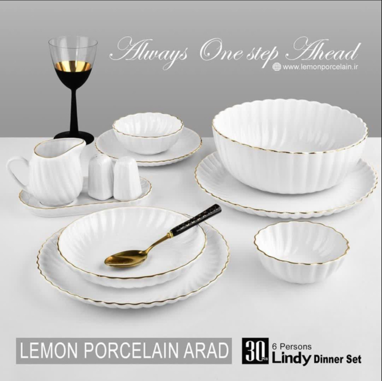 سرویس ۶ نفره ۳۰ پارچه لب طلا کنگره قالب کارمن چینی لیمون