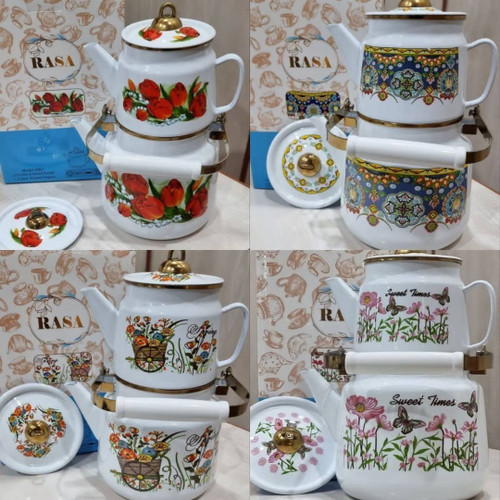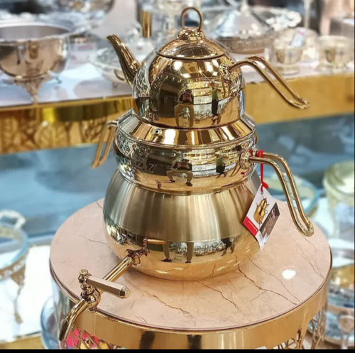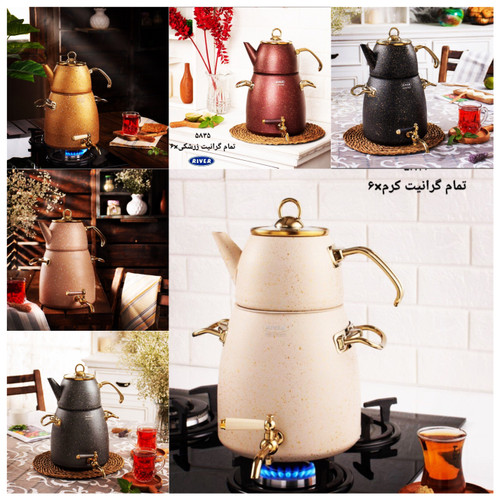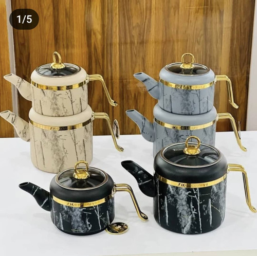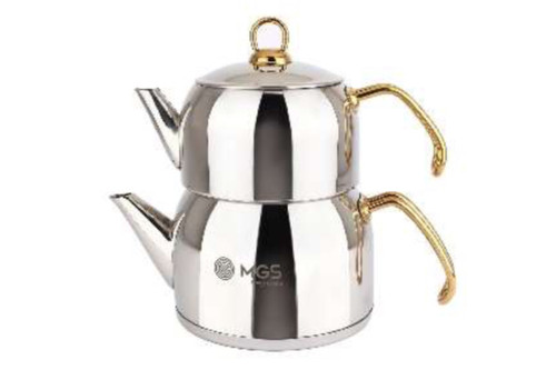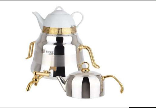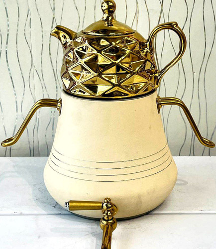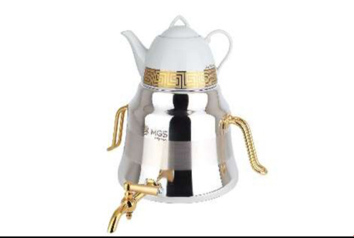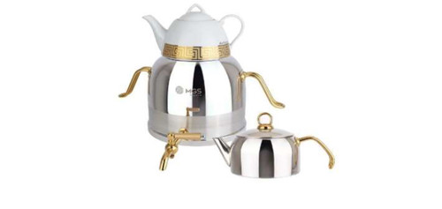 کتری قوری شیردار دسته طلا دو قوری mgs